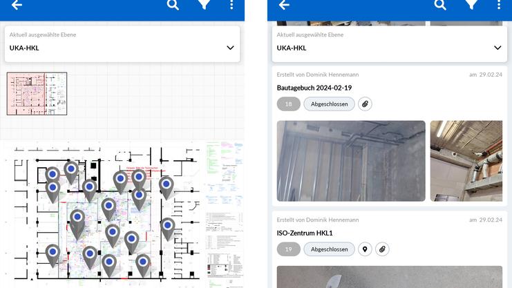Die Dokumentation, Verfolgung und Verortung der Mängel erfolgen mit einem Ticketsystem über eine App. Der Nutzer erlangt schnell eine Übersicht, da diese Tickets im Grundriss verortet werden.