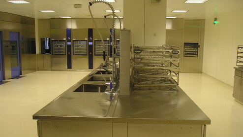 Am Standort Niederkorn wurde die vorhandene Zentralsterilisation bei laufendem Betrieb umstrukturiert, so dass nun die Sterilgutversorgung für beide Standorte erfolgt. Die neue ZSVA hat eine Nutzfläche von 770m² und eine Jahresleistung von rund 62.000 StE.