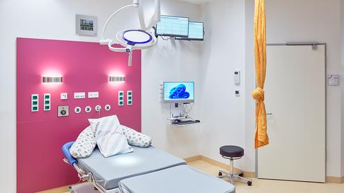 Die Geburtsabteilung wurde um 4 zusätzliche Kreißsäle, 1 neuen Sektio-OP inkl. Nebenraumprogramm, eine Reanimationseinheit für Mehrlingsgeburten erweitert und durch einen Umbau konnten weitere Plätze in der Neonatologie inkl. Frühgeborenen-Intensivstation geschaffen werden.