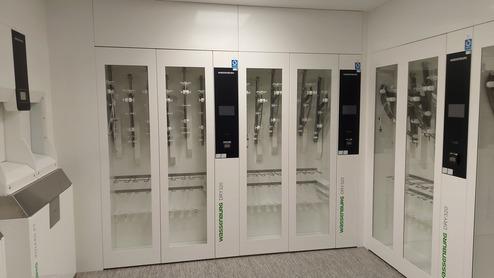 Im letzten Bauabschnitt wurde im Untergeschoss des neuen Funktionstraktes eine moderne Endoskopie-Abteilung mit vier Untersuchungsräumen für die Bereiche Gastroenterologie und Pneumologie, einer Endoskop-Aufbereitung, Überwachungsplätzen und weiteren Funktionsträumen fertiggestellt.