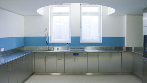 Das Gebäude der alten Aufbereitungseinheit für Medizinprodukte (AEMP) wurde im laufenden Betrieb saniert und für eine Jahresleistung von 35.000 StE komplett neu eingerichtet.
