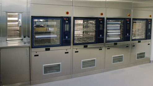 1 zentrale Dosieranlage für Reinigungschemie / Vorreinigung mit Ultraschallbecken / 4 Reinigungs- und Desinfektionsgeräte für 15 Siebe / 4 Packplätze / 1 Einschweißtisch / 1 Einschweißtisch für H2O2-Sterilisation / 1 Schrank für Nachlegeinstrumente / 2 Dampfsterilisatoren mit einem Elektrodampferzeuger für je 9 StE / Sterilgulager / Wagenreinigung.
