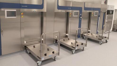 Die AEMP des Universitätsklinikums Bonn wurde als Neubau mit einer Grundrisskonfiguration einer freistehenden Sterilgutaufbereitung konzipiert. Geplant wurde ein Betrieb für 85.000 STE / Jahr im 3-Schicht-Betrieb. In der neuen AEMP werden das normale Instrumentarium, thermolabile Instrumente und Bronchoskope aufbereitet. Kurzfristig wurde auch die Aufbereitung von da-Vinci-Instrumenten in das Portfolio aufgenommen.