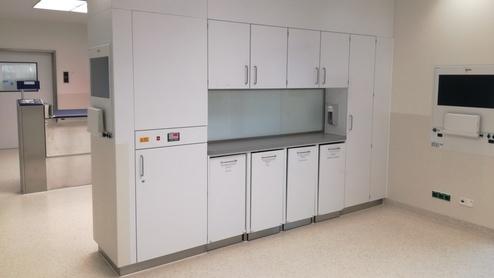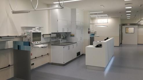 Die Sanierung beinhaltete ebenfalls alle Nebenräume wie Sterilflure, Ein- und Ausleitungen, Aufwachräume, Umbettung sowie reine und unreine Arbeitsräume.